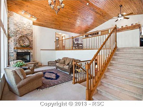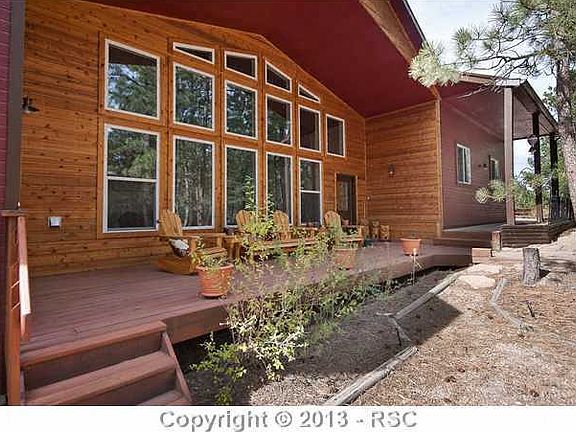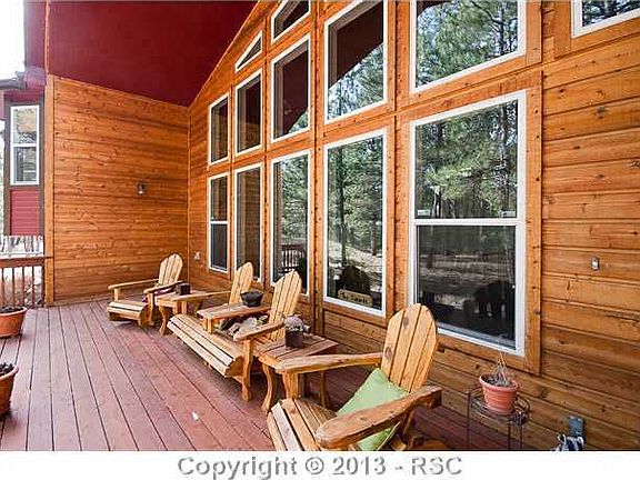 Live the Colorado lifestyle on 5 acres. Spectacular front entry features covered porch. The main level living room has wall of windows, full wall rock fireplace, and wood panel ceilings. The amazing kitchen has granite counters, roll out shelving, breakfast bar, and hardwood floor. The adjoining dining room has walkout to backyard deck for easy entertaining. The master suite has sitting area, walk-in closet and elegant adjoining bath that features jetted tub, spearate shower, and granite counters. The lower level family