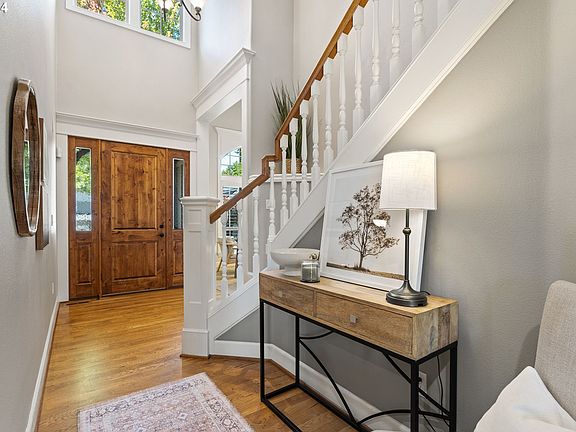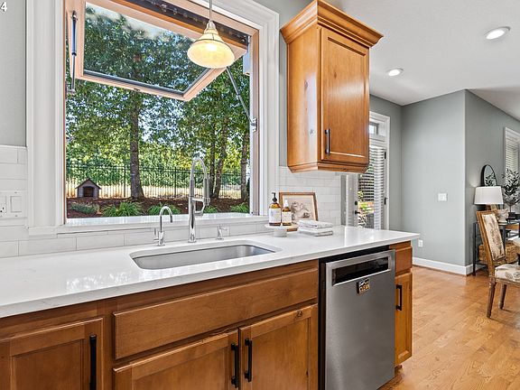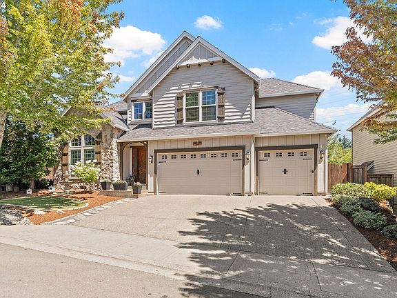 Huge price reduction = Motivated Seller! A true oasis, this beautifully remodeled 4BR/Den/2.5BA custom home is a true entertainer's delight. Offering a serene backyard setting with lush cherry trees, mature landscaping a protected green space, stamped concrete patio + fire pit. The gourmet kitchen makes entertaining a breeze with a pass through window to the outside bar and gas BBQ. The spacious area blends easily into the family room with a cozy fireplace & den. Integrated family rm & outdoor patio speaker system. Formal living & dining rooms plus an elegant spiral staircase welcomes visitors in the foyer. Upstairs is the primary suite w/double doors, fireplace as well as the recently remodeled bathroom w/soaking tub, walk in shower, tile floors & quartz counters on the dual vanity. Additional upper-level amenities include a large utility room, two bedrooms, and a spacious bonus room convertible into a fourth bedroom. Abundant storage throughout and a three-car tandem garage w/utility sink & equipped with an EV charger provide practical convenience. Low maintenance front yard w/turf + full irrigation system. Upgrades in 2020 include a new roof, gutters, downspouts, and fresh exterior paint. Conveniently located in a secluded cul-de-sac with neighborhood walking trails & within the acclaimed Tigard school district, this residence offers easy commuting access and enjoys the benefit of no HOA dues. Experience the epitome of comfort and style in this private retreat, schedule your showing today!