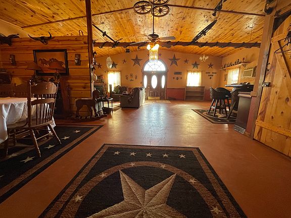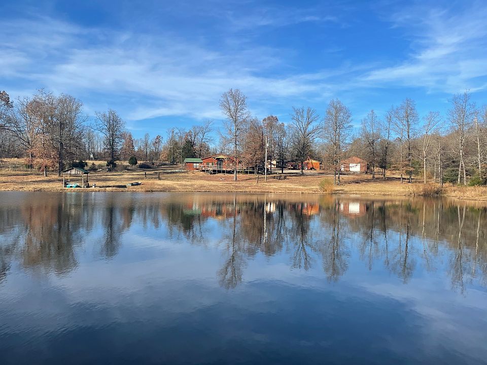 Cedar log siding home over looking huge pond in the middle of 58 acres m/l with 4 bedrooms 2 1/2 baths, laundry, dining area, kitchen is open to living area, family room approx.,32X32, with gas log fireplace & bar area for entertaining with pine wood ceilings. 30X40 shop, 24X19 shop both with concrete floors and electric, multiple other outbuildings along with older Mobile Home with well & utlities. 2 addn'l small ponds & woods for hunting. give us a call for lots more info on this home and acreage.