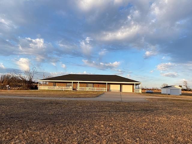 Executive ranch home, just outside of town with wrap-around porch, detached garage and a wonderful location! This beautiful 3 bed, 2 full bath home (with no steps) is spacious and offers a split floorplan. 100% brick exterior, efficient central heat and cooling, custom kitchen, solid wood doors, sprinkler system and oversized (attached) 2-car garage with nice storage! New roof Fall 2020. Detached garage has concrete floor, ventless wall heater, & electric door opener--superior Man Space! Garden area and RV parking area on level this level property. A beautiful home in Our Ozarks with no restrictions and close to our lakes, rivers and Mark Twain National Forest!