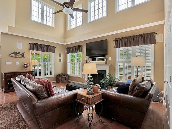 NEW PRICE - This exceptional brick front home has stunning curb appeal and is situated on a corner lot, offering a generous open floor plan with 4 bedrooms and 2 and a half baths. Enter into a 2 story foyer and youâEUR(tm)ll find beautiful hardwood throughout the main floor and formal rooms. The main living area centers around a 2 story Family Room and Kitchen combination, complete with surround sound, gas fireplace, and custom remote blinds. The gourmet eat-in kitchen has tons of counter space, some new appliances, bar area for seating, enormous walk-in pantry, and separate beverage center with wine cooler. Upstairs FROM THE DUAL STAIRCASE youâEUR(tm)ll find a very large Master Bedroom Suite complete with his and her closets, and a deluxe Master Bath with soaking tub and separate shower. 3 additional bedrooms and a walk-up attic that is floored and expandable for additional storage or finishing. Just off the kitchen is a peaceful screened patio that opens to a grand rear deck perfect for entertaining. 2 zoned HVAC, security system, irrigation, fenced back yard, and 2 car attached garage are just a few more features of this perfect home.