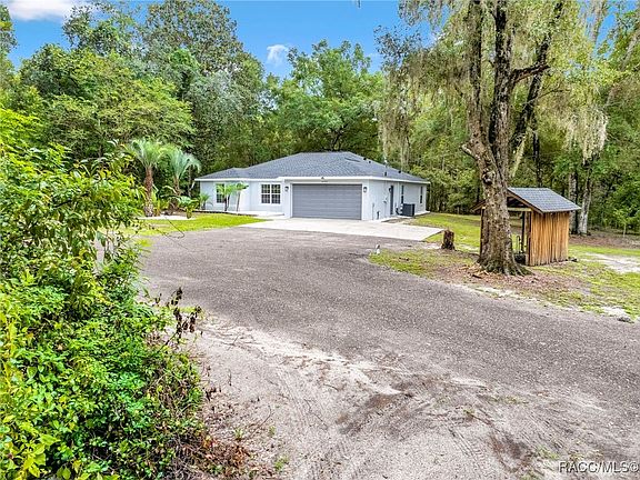 One or more photo(s) has been virtually staged. Lowest priced block home on 2.5 acres ZONED Agricultural (AG). This beautifully updated 1,525 sq. ft. home, built in 2007, offers three bedrooms, two bathrooms, and a spacious two-car garage. The property combines modern updates with endless outdoor possibilities—perfect for those who dream of space, privacy, and even farm animals. Recent improvements include a brand new roof, a brand new A/C system, a new septic tank, fresh paint inside and out, new granite countertops in the kitchen and bathrooms, and new carpet in all three bedrooms. Step inside to find a large open living and dining room combo with a brand-new wall-mounted TV for the new owners. The kitchen sits straight ahead, featuring real wood cabinetry with nickel hardware, granite countertops, and newer stainless steel appliances. Down the hallway are two guest bedrooms with new carpeting, remote-controlled ceiling fans, and standard closets, along with a modestly updated guest bathroom featuring a tub/shower combo, single-sink granite vanity, and updated lighting. On the opposite side of the home, the private master suite offers two walk-in closets, a dual-sink granite vanity, a walk-in shower, a linen closet, and a private commode with ventilation. Sliding glass doors from the living area open to a fully screened lanai with a new outdoor ceiling fan, overlooking the expansive 2.5-acre private retreat. The property includes multiple cleared areas, ready for metal buildings, pole barns, or other structures. Additional highlights include a newly installed asphalt millings driveway leading to an oversized concrete drive, a private well with a dedicated well house, and water lines throughout portions of the property for gardening, landscaping, or livestock. With agricultural zoning, you can truly make the land your own. This home offers the perfect blend of modern comfort, acreage, and affordability. With major updates already completed, it is truly a turn-key property ready for its next owner.