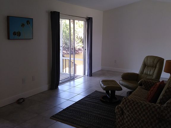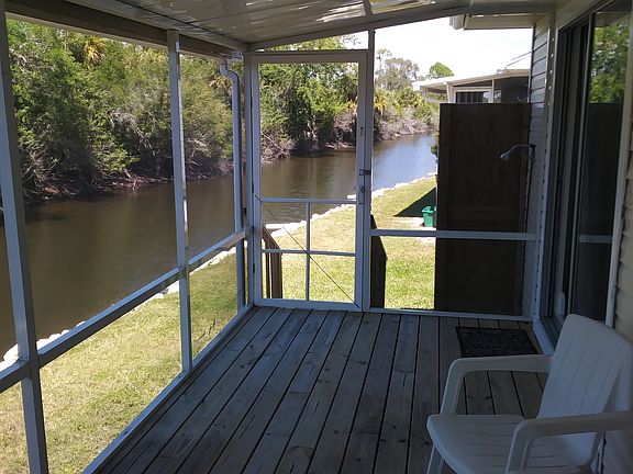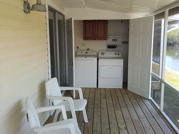 Perfect for snowbirds. 1 bed 1 bath waterfront duplex. Move in ready, great private location, convienant to everything, enclosed washer and dryer on back porch. These units are not condos and treated as single family homes. Nice pool/clubhouse. Tiled throughout living area and bath. Very peaceful. Designated 2 car parking. Lawn maintenance/trims taken care of. Newer roof. NO PETS.