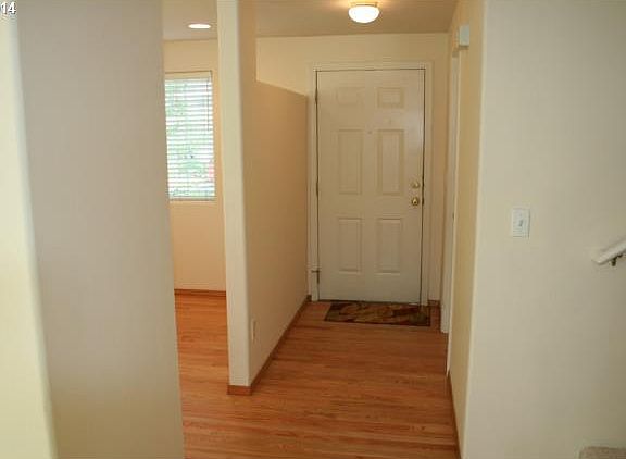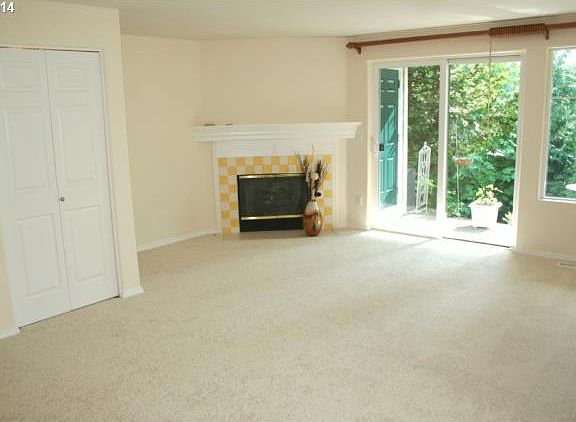 Light and bright end-unit, move in condition! Covered patio overlooks wooded common area. Kitchen features hardwood flooring with pass through to dining room. Brand new carpet throughout July 2014. One car attached garage with private parking space. Living room with gas fireplace and slider to back patio. Convenient main level half bath.