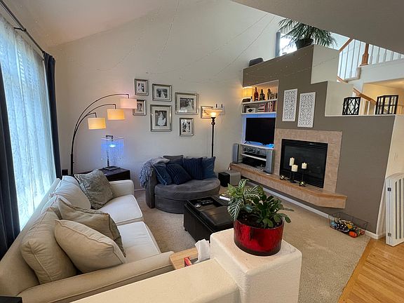 Single family home with open floor plan, vaulted ceilings, hardwood floors, gas fireplace and central AC make this low maintenance home a gem! Spacious kitchen has a sunny breakfast area, and main floor also includes formal dining room and laundry room. Large primary bedroom, secondary bedroom and spacious loft on upper level. Partial basement is finished. No yard to maintain, short walk to neighborhood pool. Two car garage. New carpets will be installed. Available November 1st. Owner pays HOA fee; property taxes. Renter is responsible for all utilities - water/sewer; gas/electric, cable/internet.