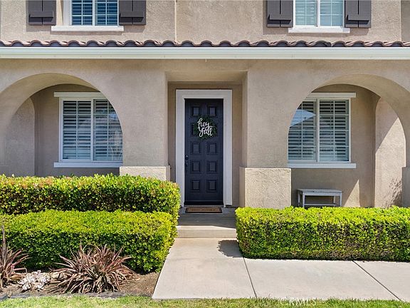 Nestled in the prestigious community of Eastvale, 14334 Goose Street has been tastefully and elegantly updated throughout. This impeccably remodeled 4 bedroom, 2.5 bathroom home is a testament of class and practicality, offering a wealth of upgrades and amenities. Upon entering, you are welcomed by a formal living room to the left and a formal dining room to the right, setting the stage for sophisticated gatherings. The heart of the home lies in the open-concept kitchen, which seamlessly flows into the family room. The kitchen features beveled subway tile backsplash, granite countertops, a large kitchen island, and top-of-the-line KitchenAid appliances. An informal dining area off the kitchen provides the perfect space for casual meals. Throughout the home, recessed lighting illuminates, creating a warm and inviting atmosphere. A den, ideal for use as an in-home office or playroom, offers versatility to suit your needs. A conveniently located powder room on the main level adds to the home's functionality. Upstairs, a loft currently serves as a movie theater/media room, providing endless entertainment possibilities. The spacious master suite is a sanctuary of relaxation, featuring his and her closets, a charming barn door and a luxurious ensuite bathroom with handmade subway tile backsplash in the walk-in shower, a separate soaking tub, and dual sink vanity with Quartz counters. The secondary bedrooms are generously sized and share a bathroom with a shower in tub combination accented with subway tile backsplash and a dual sink vanity. The upstairs laundry room is equipped with a utility sink, storage, and hanging racks. This home is adorned with plantation shutters throughout, adding a touch of elegance to each room. The family room and great room feature shiplap accents, enhancing the home's charm and character. Outside, the backyard is a private oasis, complete with a sparkling rock pool with a Baja shelf, a spa and waterfall. The garage boasts epoxy flooring and built-in cabinets for ample storage. Additional features include a whole-house fan, dual units for climate control, a Google controller, and a solar lease that significantly reduces energy costs. Zoned within the award-winning Corona-Norco School District and conveniently located walking distance to Ronald Reagan Elementary and Half Moon Park. Close proximity to many shops, restaurants, parks, and freeways, this home offers a rare opportunity to experience luxurious living in a prime location.