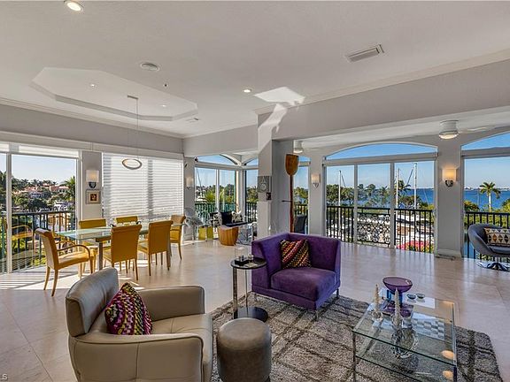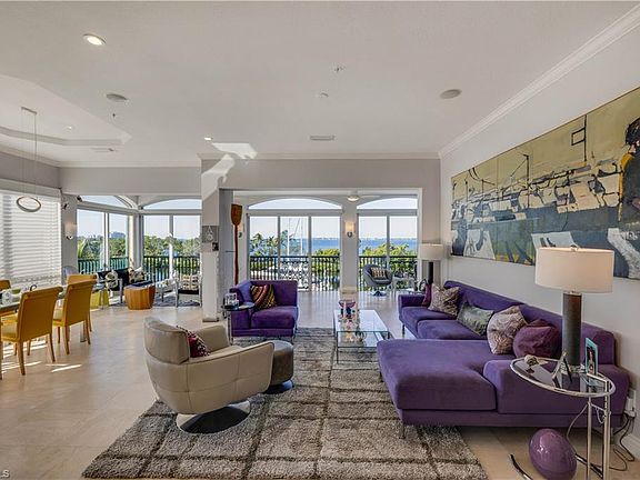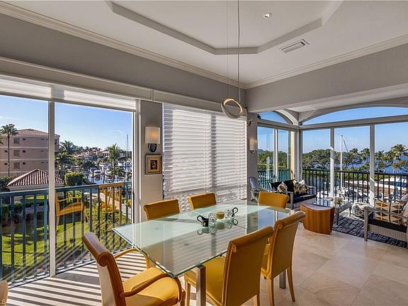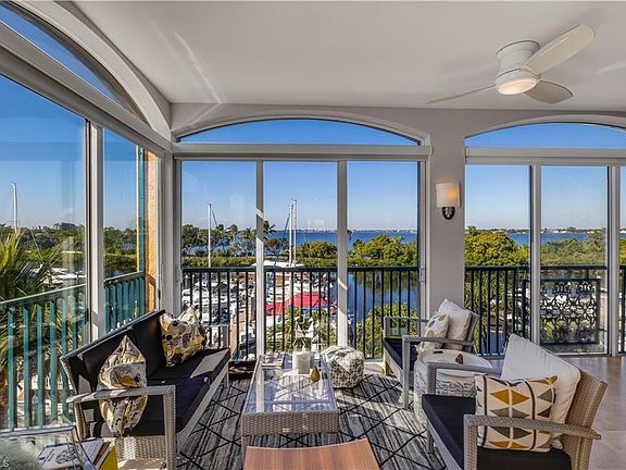 Spectacular Waterfront Harbour Landings located on the marina, one of only 2 buildings with no adjacent neighboring buildings. Southern & Western exposure. Lanai opened up with continuous Travertine Tile and Hurricane Sliding Patio doors. Kitchen with White cabinetry & Stunning Exotic Granite. Arcobaleno and Costa Emeralida, Glass Backsplash. Top of the Line Appliances. Custom Integrated entertainment Center in the Family Room with Ruffled Maple Cabinetry, Refrigerator, Wine Chiller, pull-out Television & Hidden Exit Door. 3rd Bedroom has Custom built-in Maple Cabinetry, Double Murphy Bed & Desk. Bathrooms have Custom Cabinetry & Counter Tops. Powder Room has Custom Brazilian Wood Cabinetry, Glass Counter & Art Mirror. Oversize Garage w Cabinetry, Work Bench and Painted Floor. Awesome Amenities included with additional purchase of Membership, includes new 6mm$ golf course. Tennis courts, attended fitness center, pool, hot tub, 2 waterfront restaurants & marina. Island with playground & bocce ball.