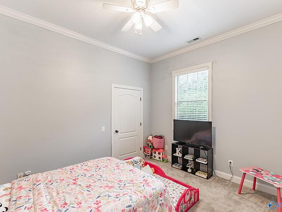 Step away from the busy city to this beautiful custom-built 3-bed 2-bath brick home on 3.5 acres. 2-car garage and a walk-in attic. Features include 10-foot ceilings, Crown molding throughout the home with a large master bedroom, sweetheart closets, a garden tub and a walk-in shower. French doors lead to large screened in lanai and spacious back yard. The living room features a gas fireplace. New gravel driveway (2024) septic tank cleaned (2024) Freshly painted. Madison County Schools. 20-minute drive from Huntsville. This home comes with equipped with unique geothermal heating and cooling for energy efficiency. Also has a full-sized boat shop with a 3/4 bathroom and a covered patio.