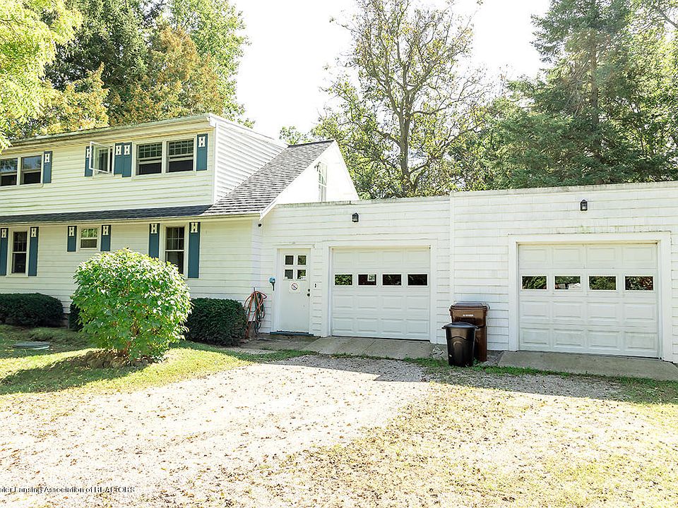 Welcome to 14334 Woodbury Rd! Haslett Schools! This 4-5 bed, 2 full bath home boasts just over 1800 finished square feet! DEEP 2 ACRE LOT W/ MATURE TREES! Main level features a FIRST FLOOR MASTER BEDROOM, spacious living room, formal dining area, office, and kitchen w solid oak cabinetry. HARDWOOD FLOORING UNDER THE EXISTING CARPET! Upstairs contains the 4 sizable bedrooms, the 2nd full bath, HARDWOOD FLOORING THROUGHOUT, and tons of storage space! Finished off with a partially finished basement, 2 car attached garage, and a BOAT HOUSE SHED! Tons of history! VERY SOLID HOME, 2X6 CONSTRUCTION. Lots of potential!