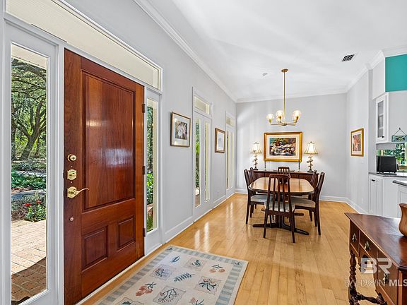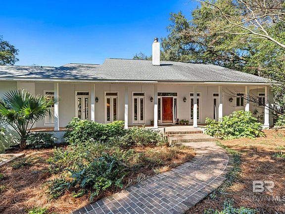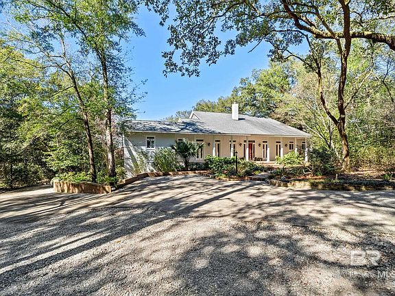 This beautiful riverside home is located on 4 wooded acres with 200’ on the wide part of Fish River. The driveway winds through the woods setting the stage for the beauty that awaits. You will arrive at a stunning home surrounded by live oaks, magnolias and camellias. When you enter the main level you will be greeted by spacious living areas designed for comfort and entertaining. The home has wood floors and high ceilings with crown molding. Spanning the river-side of the house is a large sunroom o?ering picturesque views of the lovely landscaping and the river. The living room and dining room open into the bright centrally located kitchen which has a breakfast area and abundant cabinet space. All kitchen appliances remain plus a freezer, garage refrigerator, washer and dryer. There are 3 bedrooms with Plantation shutters and 3 full baths. The large Master Suite features lots of built-ins plus double sinks, a jetted tub, separate shower, walk-in closet and laundry room. The river side of the home is surrounded by a deck. Either of the two sets of stairs will take you down to gently sloping paths through well-maintained landscaping to the dock where you will find upper and lower lounging areas, a screen room, electricity and water. There are 2 boat lifts over deep water. You can be in the Gulf fishing in 45 minutes. The lower level of the home has a double garage, heated and cooled workshop/storage room plus a 2nd storage room.The property also features a well to provide water for the extensive irrigation system and greenhouse. With its many amenities, stunning views and expansive waterfront, this property o?ers a one-of-a-kind riverfront living experience. Don’t miss your chance to call this slice of paradise home. Schedule a showing today. All information provided is deemed reliable but not guaranteed. Buyer or buyer’s agent to verify all information.
