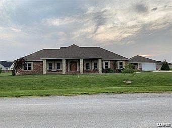Very nice full brick ranch home on the north side of Aviston in Sunset Hills Subdivision. This home is 3 bedroom and 3.5 bathrooms, each bedroom has its own full bathroom and large closet. There is wood floors throughout the living room, dining room, hallways and kitchen. There is a half bathroom and laundry room that sits off the entrance from the garage. Nice open floor plan through the home and a office off the foyer with double glass doors. There is a full basement that has one egress window and 3 lookout windows and rough in plumbing for a bathroom. To top off this house there is a 28x40 Shed with a 12x40 porch and a full stone outdoor fireplace. Very nice home in a great location. Don't miss this one set up a showing today