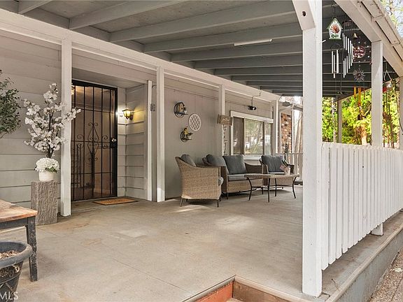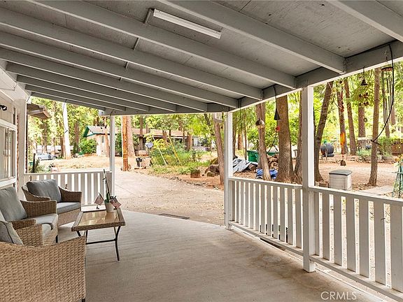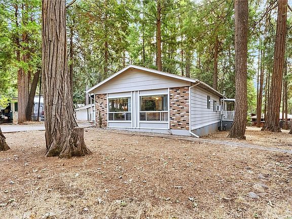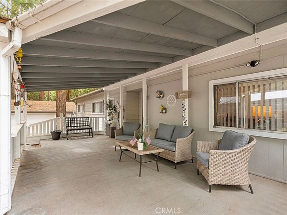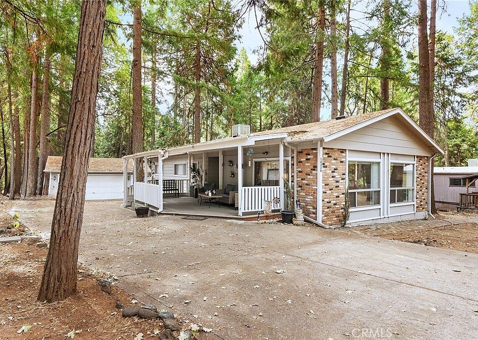 Time to buy! Great Location in the tall pines and cedar trees. This home was remodeled and then upgraded some more in the last few years with flooring, a few other things and drywall too! No old paneling and comes with furniture and more. It sets well back off the road and has an long concrete driveway leading to an oversized 2 car garage, with small generator for power outages. There is a large charming, covered porch to greet you and invite you to rlaxe with your morning coffee, or a glass of wine at the end of day. There is also another open deck with access from the larger bedroom for a more private setting. The flooring has been upgraded, lighting too, and there is crown molding throughout the home. Three wall/window air conditioners were added for efficiency and there is a pellet stove to help in the winter. There is a large living room with picture windows. There is central heat, plus an energy efficient evaporative cooler for the summer! The remodeled kitchen has updated cabinets, counters, appliances and flooring. The dining room is open to kitchen area for ease and has a nice built in cabinet. The primary bedroom has a newer sliding glass door to an uncovered deck, mirrored closet doors and its own spacious private bathroom with a full tub/shower enclosure & updated vanity and lighting. The guest bedroom has access to the adjacent guest bathroom that has another full tub/shower unit and updated vanity & lights. There is a timer for the drip system that is on the front porch for hanging plants. This home is just a short distance from the Village Clubhouse that offers a wide range of amenities including swimming pool, spa, tennis courts, bocce ball, meeting rooms,library, banquet facilities, a children's playground and more. Seller is selling as is in current condition.