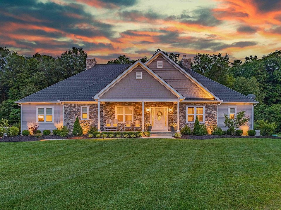 Breathtaking home located on over 5 acres in Galena! Home offers gorgeous wood floors, vaulted ceilings, floor to ceiling fireplace, open floor plan, and beautiful private patio. Entry level living room, family room, office, dining area with kitchenette space and chef's kitchen fully loaded with Thermador appliances. 3 bedrooms and 3 full baths, all built for king beds and attached full baths. Finished lower level has living room, kitchenette, 1 bedroom and attached full bath. Enjoy outdoor living space with 1,200 sqft patio with kitchen, bar and jacuzzi. Home features 2x6 construction to allow for extra insulation and squeak free laminated beam floor joists. Other features include irrigation system on private well, fully stocked pond, whole home generator, Garage wired for EV charging.