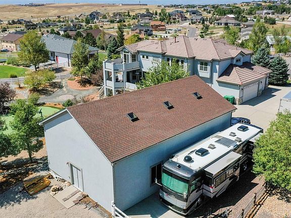 Wow! Elegant home on a hill has the tranquility of remote living but is close to any convenience you could want. $140K lot premium paid in '07 provides unobstructed views of 2 lakes and the mountains from the triple deck/patio combo. 8 person self contained SPA with underwater sound system, putting green w/ sand trap & pitching pads set to 15, 30 and 40 yds. Impeccably landscaped lot with waterfall feature and impressive circular drive. Soaring ceilings built to impress. Gorgeous Brazilian cherry hardwoods throughout the main level. Feature rich home boasts of impressive study, home gym, game room, and most impressively custom built Spanish cedar and Slate walk in humidor and wine cellar. Massive master retreat complete with fireplace, private master bath including European hinged glass walk in shower, heated soaker Jacuzzi tub, and private lake view deck! Secondary bedrooms equally impressive, all have dedicated en suite or jack and jill baths. Elegant tile work throughout every bathroom. Near 10' ceilings in finished walkout basement. Bonuses galore: gym, game room, humidor/wine cellar, hot tub, and massive teen suite. Amazing man cave - huge 1600 square foot secondary garage with dual RV oversized doors plus additional space in the upper loft. Property zoned for 2 horses and has fenced corral with water source. Strong self managed HOA that keeps the area nice but is unobtrusive in your lifestyle. Hurry, homes like this aren't available very often. Buyer to verify all.