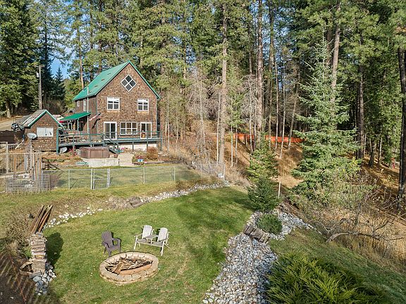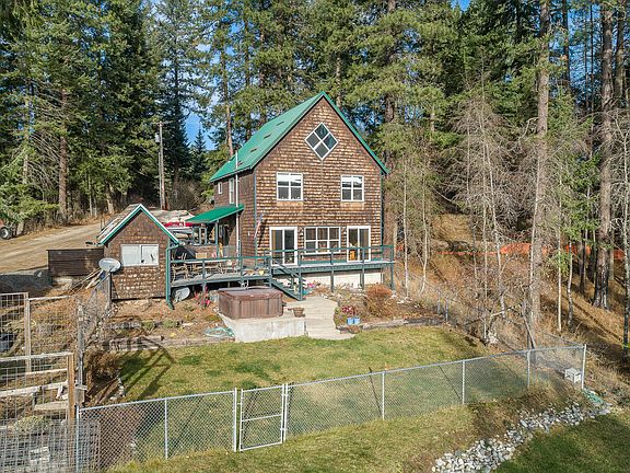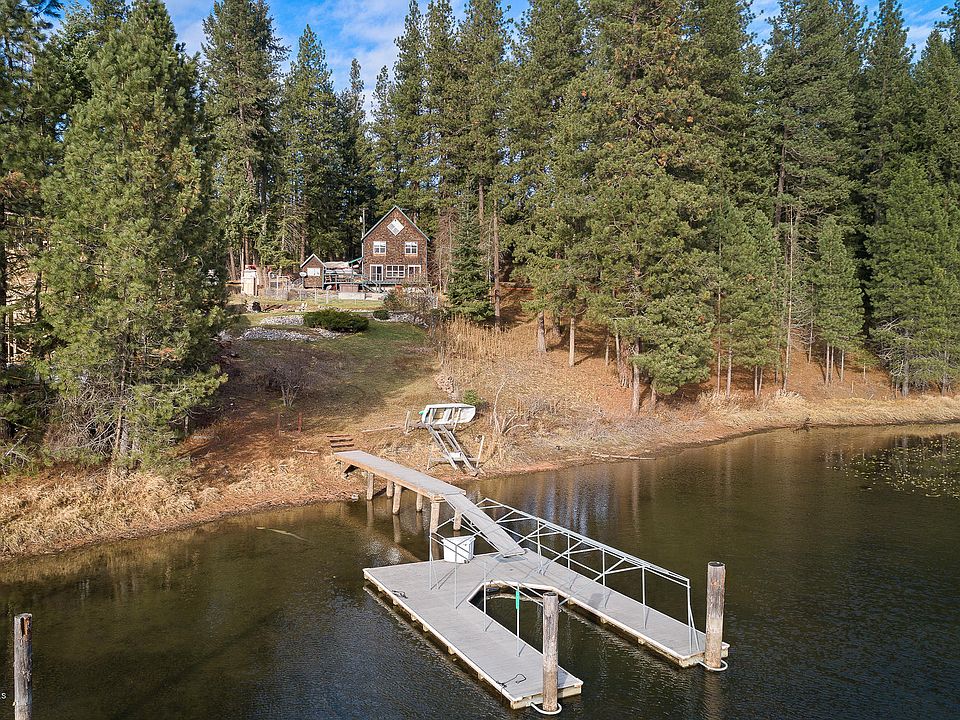 HAYDEN LAKE WATERFRONT - 1,792 sf lake home on Hayden Lake with 75 frontage feet, your own Trex composite dock/boat slip, and a gentle slope to waters edge. The home enjoys an open floor plan with lake views from almost every room including the master bedroom suite, sitting room/office or 3rd bedroom, and large 2nd bedroom suite upstairs. The open deck overlooks the lawn, fire pit, dock and lake. The large property gives you plenty of room to enjoy the outdoors with a fenced yard, raised garden beds, and two outbuildings for storage. Photos show Hayden Lake at lower seasonal water levels. What a wonderful place to live and play!