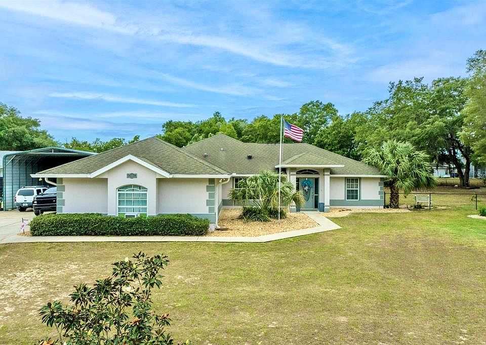 AMAZING!!! This Florida gem has it all! 1 1/2 ACRES LAKE VIEW HOME WITH PRIVATE LAKE ACCESS, SALTWATER POOL, HOT TUB, HUGE RV PORT, TOOL SHEDS, and SOLID BLOC & STUCCO 3BED 2.5BATH DESIGNER BUILT HOME WITH MANY UPGRADES. Minutes from The Villages, Lake Eaton Beach, shopping, restaurants, everything you need, yet tucked on a country road with Old Florida feel. This property invites a life to truly enjoy! Home Details: BUILT - 2001 HOMES BY WHITTAKER. SPACIOUS LIVING ROOM WITH EASY-CLEAN VINYL WOOD FLOORS. EASY ACCESS KITCHEN YET TUCKED IN THAT SETS THE MOOD FOR COOKING, EQUIPPED WITH AN ISLAND, AMPLE GRANITE COUNTERTOP SPACE AND STAINLESS STEEL APPLIANCES. TILE FLOORING THROUGHOUT THE DINING ROOM AND RECREATIONAL ROOM AREA, REC ROOM PERFECT FOR PLAYING POOL, KIDS PLAYROOM, YOU NAME IT! ALL 3 BEDROOMS CLEAN & COMFORTABLE NEW CARPETING. NICE MASTER BEDROOM WITH OVERSIZED WALKIN CLOSET - AND WOW THE MASTER BATHROOM!!! NEW VANITY, AND A CUSTOM BUILD EXTENDED OPEN DROPDOWN SHOWER WITH 2 PREMIUM SHOWER HEADS + HANDICAP ACCESSIBLE, DOUBLE SINKS, PERFECT FOR COUPLES! SCREENED IN PORCH WITH HOTUB. BEAUTIFUL SCREENED IN 6 FT DEEP SALTWATER POOL. COVERED LANAI. COMPLETELY FENCED IN YARD SPACIOUS FOR GARDENING, GROWING FOOD, OR HAVING A GREAT PLAY AREA FOR KIDS OR PETS. PRIVATE ACCESS TO LAKE STEPS AWAY FROM THE HOME DIRECTLY ACROSS THE STREET WITH PICNIC/BBQ AREA, WOODEN DOCK, AND CONCRETE BOAT RAMP TO WATER! RV PORT 36X24, ADDITIONAL CARPORT 18X26, 2 STORAGE UNITS. 2013 ROOF AND A/C IN EXCELLENT CONDITION. DOUBLE PANE WINDOWS. RAIN GUTTERS. WATER SOFTNER WITH SAND FILTRATION. RARE OPPORTUNITY TO OWN A PROPERTY LIKE THIS UNDER -600K! THIS AREA IS BOOMING, YET HOW THE PROPERTY IS SITUATED WILL ALWAYS GIVE YOU THAT NICE FLORIDA COUNTRY FEEL...