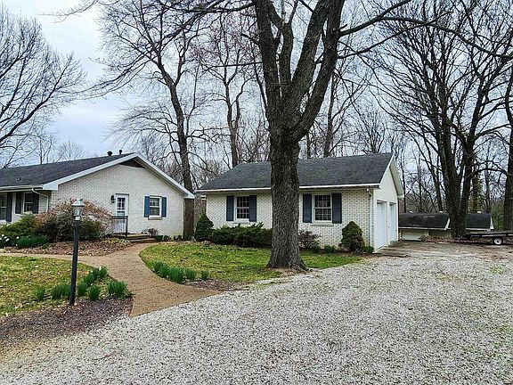 ESTATE... Custom built 3 bedroom, 1 full bath brick ranch with 1/2 bath (shower/sink) in the unfinished basement located on wooded north side lot. TWO detached 2+ car garages... The 2.5 car garage in the back was used as a woodshop and has 2 overhead doors for mowing equipment. The 2.5 car garage closest to the house offers a half bath and office with gas heater. Stairwell leads to floored attic area in garage. This garage (closest to the house) also has a small basement area for storage. All bedrooms are on the main floor. The owner's suite is a large 15 x13 room. Septic system location is evident from the cleanouts in back. Home is on city water. Formal dining room cabinet may be removed prior to closing. Home sold as-is and is currently in move-in condition.