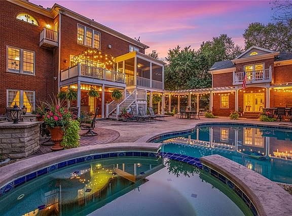 Beautiful Georgian All-Brick home on acre lot, backing to trees. Two story home, beautifully maintained and updated, hardwoods throughout main level and second story. Screened porch overlooking gorgeous saltwater pool, firepit, outdoor kitchen and lush landscaping. Two story entry opens to formal dining and office areas with amazing bay windows, architectural details that you will only find in a home of this caliber. Large kitchen and dining areas, perfect for family gatherings. Step out onto the enchanting screened porch, overlooking the saltwater pool and trees. Kitchen opens to spacious Family and Parlor rooms, providing abundant areas for entertaining or a night of family games. Second floor boasts Master Bedroom with fireplace, large laundry room, and three spacious bedrooms each with their own full bath and walk-in closets. Lower Level walkout basement includes a 5th bedroom and full bath. Oversize 3 car side entry garage with surprise spacious storage room. Cool off with inviting inground saltwater pool in private backyard setting. Firepit and outdoor kitchen too, perfect for outdoor gatherings! Relax in the two story brick carriage house. First floor boasts a large recreational room, 2nd kitchen, and full bath, light and airy w/tons of natural light. Walk up to the 2nd floor and you will find yourself in an amazing British Pub with deck overlooking the pool area - the ultimate man cave! No detail left untouched. This is an amazing home in the award winning Blue Valley School District 2022-01-18