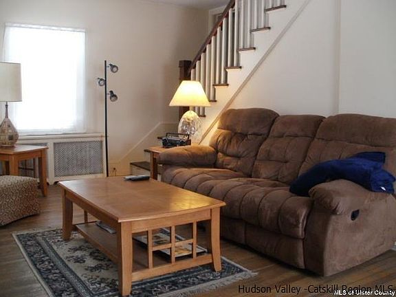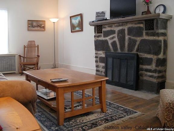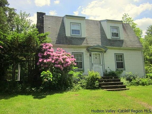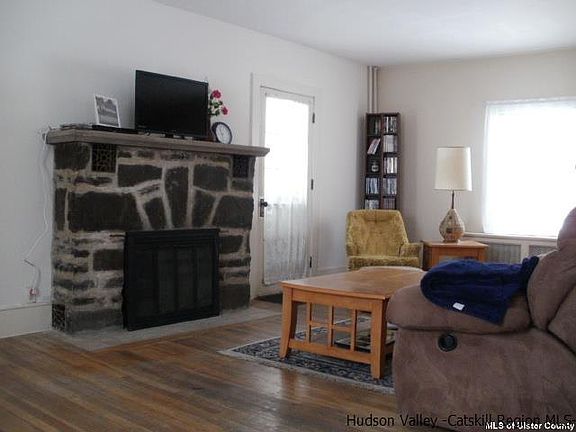 1930's farmhouse located just outside Kerhonkson village has all of what you have been looking for in a country home. Unique gambrel roofed design, original solid wood flooring in all rooms (except bathroom), stone fireplace in the living room, lots of period details inside (paneled doors, original hardware, baseboards and trim). House has been in the same family for many years. Thoughtfully sited high up off the road on a pretty 1.5 acre lot with a number of large trees and shrubs to afford privacy.