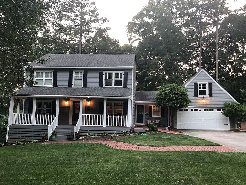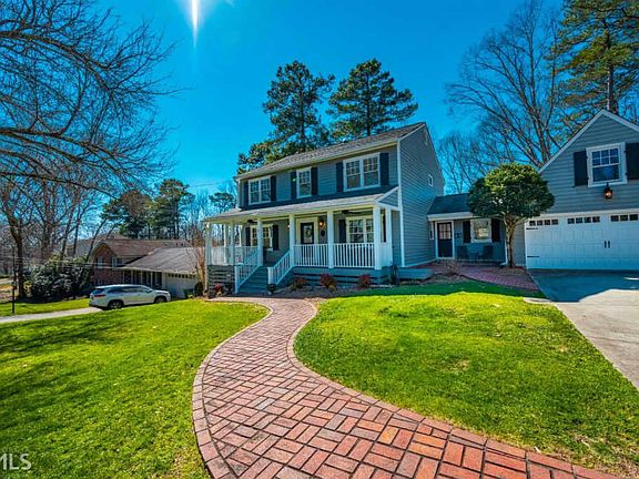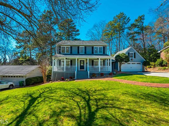 Welcome home to this charming, move-in ready home in the heart of Dunwoody! Just a short walking distance to Dunwoody Village, this home is not only conveniently located but has all the features for which you've been looking. The long, flat driveway and massive rocking chair front porch are highlights of its fantastic curb appeal. The main level offers a large formal dining room, formal living room or home office, open-concept kitchen/family room, laundry room and powder room. The kitchen is updated with 42" cabinetry, granite countertops, stainless appliances, an island and a breakfast area. Once upstairs, you'll love the oversized guest bedrooms and ample master suite. The basement is mostly finished and features a fifth bedroom, full bathroom, living area with a second fireplace and a large storage area. The backyard of this home is to DIE for with a large (composite) deck overlooking the massive fenced lawn with plenty of room for play and/or a future pool! New windows, new appliances, new siding, new paint, new guest bathroom vanity and more!