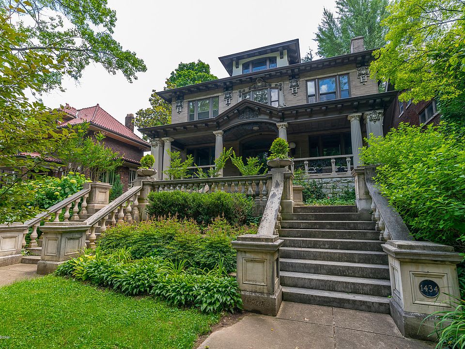 Be sure to watch the video tour for a virtual viewing! The perfect fusion of timeless elegance and modern sophistication can be yours in this grand Cherokee Triangle masterpiece. Located in one of the most desired historical neighborhoods of Louisville, this home has it all, and it starts with the welcoming veranda, a signature of Joseph and Joseph architects in the early 20th Century. The main level is full of original ''wow!'' factor with inlaid herringbone hardwood floors, elaborate millwork, gorgeous coffered ceilings, stained glass windows, a stunning foyer and center staircase. Every single room has been touched with elegant updates while carefully preserving the homes architectural integrity. A newly expanded chefs kitchen features the original butler's pantry, custom cabinetry, marble countertops and top of the line Wolf and Thermador stainless appliances. Every bath in the main house has been thoughtfully redesigned, each with their own unique touches. The second floor family quarters features a stunning master suite with private, cozy lounge, fireplace, and a bathroom ensuite with glass enclosed shower, soaker tub, double vanity and a California Closets designed walk-in closet with laundry. Two additional bedrooms round out this level, one with huge windows that is currently being used as an office, and the second with its own private screened-in porch overlooking the back garden. Continuing up to the third floor, discover more original treasures, two more ample bedrooms, a full bathroom and a convenient second laundry room. The lower level was not ignored and features comfortable living and entertaining spaces including a family room, theater room, wet bar with wine cellar and a full bathroom. Finally, the Carriage House is an ideal accommodation for family members, out of town visitors or even a great income property. It includes a fully functioning kitchen, 2 bedrooms, a full bathroom, and laundry, situated on top of a generous 2.5 car garage. Don't miss your opportunity to own an exceptional piece of Louisville history.