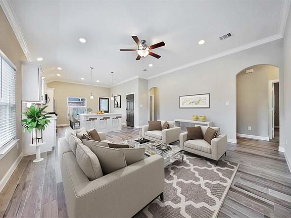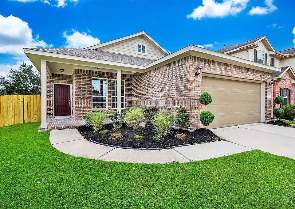 Fantastic NEW BUILD on a quiet, corner lot with great brick curb appeal, front porch, wood-look tile, granite counters in the bathrooms, and an open layout perfect for entertaining! Step inside the spacious living area and open kitchen that boasts crown molding, recessed lighting, stainless steel appliances, quartz counters, subway tile backsplash, and a breakfast bar island! The master suite has a tray ceiling, crown molding, dual sinks, a separate shower, and whirlpool tub. There are also three additional bedrooms, a second full bath with tile tub surrounds, and a convenient, central laundry room! This home also features low-E doors and windows, updated landscaping, a beautiful backyard design with hot tub, outdoor kitchen and covered back patio. Easy access to I-45, Hardy Toll Rd, and Cypress Creek Pkwy!