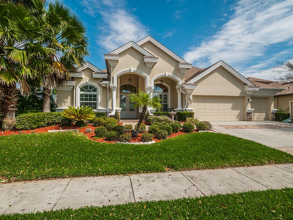Luxury Pool Home in Champions Club! This Custom Built Samuelsen Home is located on a Premium Golf Course Home site on the 14th Fairway of the renowned Fox Hollow Golf Course. This modified Kristen Floor plan is Beautifully Appointed and has so much to offer. Featuring a Large Open Feel, Gourmet Kitchen w/Custom Cabinetry, Center Island and display cases, Granite Counters, Breakfast/Snack bar & all Stainless Steel Appliances, Gas Range! The Spacious Family Room features a Gas Fireplace and Custom Built-ins, Formal Living & Dining Room w/Hard Wood Flooring and Crown Molding! A Luxurious Master Suite w/a Generous Sized Bedroom, Triple Tray Ceiling, Walk-in Closets, Master Bath w/ Whirlpool Garden Tub, Separate Shower and His/Her Vanities. Large Office/Guest Suite features in wall built-ins, Desk, shelves and pull down Murphy bed. A Huge Bonus Room is located Upstairs for Recreation and offers a Separate Room perfect for a home theatre or whatever your desire. Decorative Window Treatments, Designer Fans and Lighting, Dimmer Switches throughout the home, Architectural Niches & Window Seat, Laundry Room with Cabinets, Built-in Ironing Center, Brick Pavered Lanai with Outdoor Kitchen, and Salt Water Pool with Spa/Stone Waterfall that offers Scenic Views of the Golf Course and so much more! Near Shopping, Highly Rated Schools, Restaurants, and Trinity Hospital. This Amazing Home is Located in Champions Club, A Private, Gated Community Features: Clubhouse, Tennis, Fitness Center, Resort Pool & Spa, and Activities.