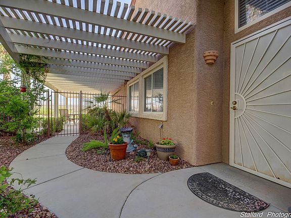This beautifully appointed townhome is located in Sunset Greens, a popular gated golf course community. The townhome has been professionally decorated with tasteful selections in custom window treatments, artful wall finishes, bamboo flooring, slate tile in the kitchen and bathrooms, upgraded light fixtures and ceiling fans and much, much more. A/C recently replaced. "Paradise" describes the backyard setting with its breathtaking views of the golf course greens and spectacular mountain views. The fully fenced yard has a covered patio and vine covered trellis that extends around the side of the building to the front door. This townhome is a "must see" to fully appreciate it. Homeowners enjoy the lush landscaping maintained by HOA, 2 swimming pools, hot tubs, pet-friendly walking trails, RV storage on-site and golf and restaurant discounts at the Casablanca golf course and casino.
