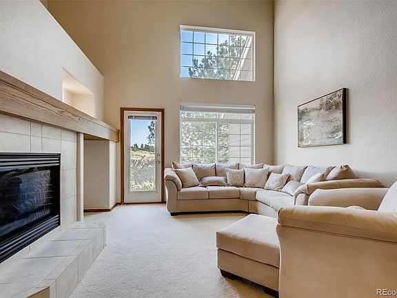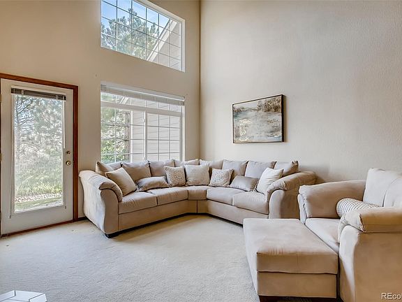 Just a short walk from the entrance to Daniels Park and its sweeping views of the Front Range this lock and leave carriage home is in pristine condition and ready to go. The spacious master suite with a renovated five piece bath with an enviable soaking tub and a huge master closet is accessed through a very wide, easy to navigate staircase. The main level boasts a second bedroom as well as a home office and another full bath. Vaulted ceilings in the living/dining room let in ample light which you can easily filter with the newer Levlor blinds that are found throughout the home. The kitchen has beautiful slate appliances which are in nearly new condition, more storage than we've seen in homes twice this size, and enough space for a large dining table. Enjoy easy access to the patio with enough space for a cafe table and a BBQ. The full basement has been used for storage but with the egress windows and a rough-in for a bath it could easily be finished for additional bedrooms and living space.