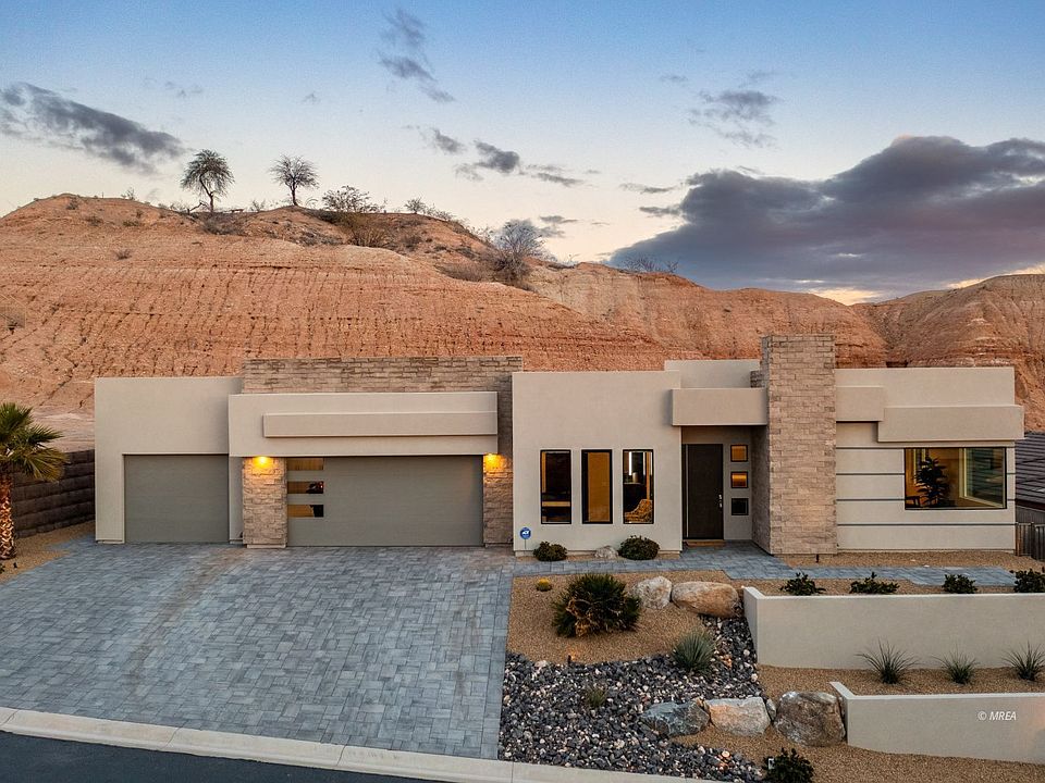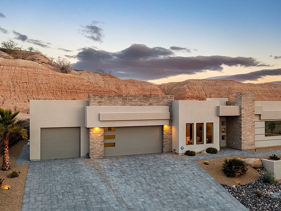 Let's talk Custom!! 1434 Pomegranate is a home that the builder built for himself so every square inch has been meticulously scrutinized. Quality Construction & a Quality Layout make this one of the very best homes on the market. Built in 2021, This home was built with clean lines and fresh colors that combine Modern and comfortable and bring it right into your every day living space. The Open concept design features large picture windows, backlit floating cabinets and fireplace mantel, indirect lighting throughout, and accents throughout the home that can truly be appreciated. Elegant & Functional as the 2,480SF of living space brings you delight in every room, by either offering a spectacular valley view or by superb craftsmanship. The kitchen offers high end GE Cafe appliances, cabinets that run to the top of the 10' ceilings, & an island that is not only a prep space, but offers bar top seating as well. 2 Main bedrooms that each claim their own ensuite and walk in closet, zero-curb walk in showers, with one ensuite offering a standalone tub. Backyard is pet friendly, fully fenced with a sun deck area and putting green. Plenty of space under the patio, with built in BBQ area.