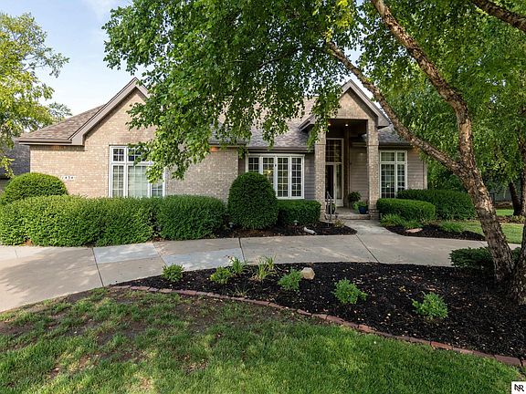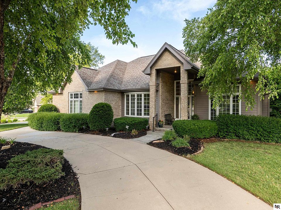 Superb feature-filled ranch home in Spring Ridge. Full brick front, cement board siding. Curved driveway and sideload garage. Ceramic tile foyer with 12' ceiling. Large main floor office with french doors, built-in shelving and cabinets could double as 4th bedroom. XL formal dining room with chair rail and crown molding. Great room with 10' ceilings, wood floors, fan, gas fireplace and built-ins. Dine-in kitchen with bay window, wood floors, center island, 5-burner gas range, electric oven, LG dishwasher/fridge, and corner pantry. Main floor laundry w/ work sink. Primary bdrm has trayed ceiling, fan, on-suite w/ walk-in closet, shower, jetted tub, and dual sinks. Finished walk-out lower level w/ 2 large bedrooms, full bath, rec room, flex space and plenty of storage. Semi-private lot with mature trees and landscaping backs to wooded area maintained by Spring Ridge HOA. Covered paver patio. Stamped concrete porch, deck w/ awning. Sprinkler and security systems.