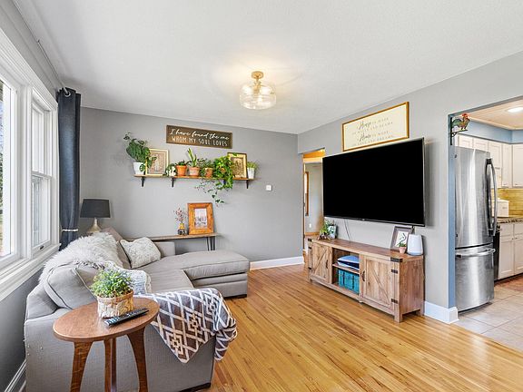 Step inside this beautifully renovated rambler in the heart of Maplewood. The main level features an updated kitchen with stainless steel appliances, updated cabinets, recessed lighting, and an island. Hardwood floors flow throughout the living room into two bedrooms with an updated bathroom adjacent. The basement is fully finished featuring a custom staircase, stained tongue and groove ceiling, recessed lighting, and an updated bedroom/bathroom. Custom woodwork throughout. This property also boasts a WAY oversized insulated and heated garage. Expansive fully fenced yard is complete with fruit trees and a 12x12 shed. New roof in 2024. Don’t miss this one!
