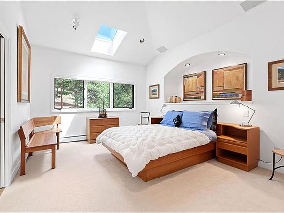 Ridge at Hiwan Custom Residence. Creative Architectural design with an artistic flair is quickly apparent as you step through the stunning solid cherry entry door, welcomed by an impressive sweeping staircase, hand forged mild steel and cherry rails rise above the great room floor to dramatic cathedral ceilings with beam accents, towering over an open loft displaying a gallery of colorful artwork. Sun filled skylights sparkle across the hardwood floors leading to two master guest suites. The main level is perfect for gatherings, offering a spacious formal dining area separated nicely by a three-sided open fireplace passing through to the living room and kitchen. Handsome raised panel cabinetry finished in crown molding and topped with high gloss granite counters. Vaulted ceilings stretch across to the living and dining area where a wall of tall windows display views of Bergen Peak and a glimpse of the golf course from the elevated deck. A butler pantry and a laundry with prep kitchen makes entertaining a breeze. A main level master suite is close by when it is time to retire for the day; a spacious five-piece bath, large walk-in closet with an exterior access to a side yard and dog run. The walkout lower level has a fourth master suite and two additional bedrooms. You will also find a spacious family room with fireplace, office area and a perfectly temperatured wine cellar. There is a private patio just outside the door, a great spot to enjoy watching the local wildlife. The open space and trails back to the property for an early morning jog or evening walk. Southern exposure and convenient to restaurants and shopping.