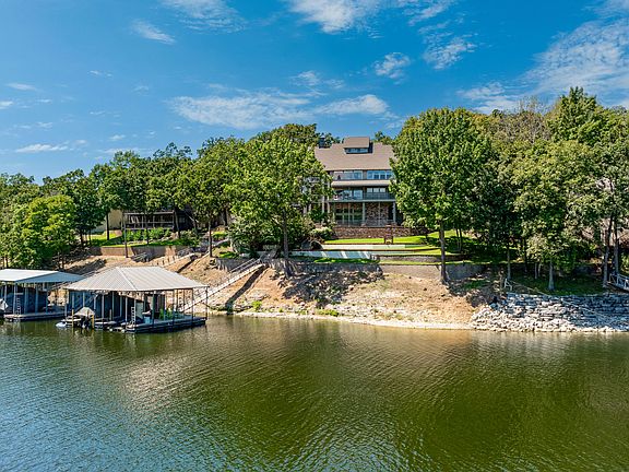 This stunning Grand Lake waterfront home in the exclusive Southpoint Estates offers luxurious lake living at its finest! Move-in ready, this spacious 5-bedroom residence comes fully furnished and includes a 2-slip boat dock, a 29' Monterey Super Sport boat, and 4 Sea-doos. Enjoy 156' of lakefront, deep water access, and breathtaking views from nearly every room. The open concept lower level features a huge family room with media area, wet bar, and game tables, while the main level boasts a spacious living room, wall of windows, fireplace, and gorgeous wood floors. You will love entertaining in this gourmet kitchen with large island with beautiful granite countertops. Each of the 5 bedrooms has a private bath and access to deck or balconey. Located in a private, gated community. Other special features include, Covered 2 slip Boat Dock 36'x36', slips are 12'x32', Boat is 2005 Monterey 296SS Super sport, 4 2005 Sea-doos, lifts & Port. Irrigation pump on the dock, raw water for yard irregation.