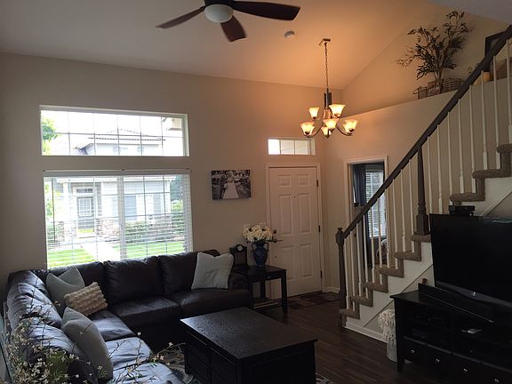 Stunning low maintenance home in highly sought after Broadlands neighborhood. Main floor bedroom and full bath. Beautiful updated kitchen with breakfast bar, Corian counters, glass-tile backsplash, stainless steel range, microwave, and dishwasher. Main floor laundry. Vaulted living room ceiling with open dining area on main floor. Upstairs loft perfect for office work space. Master bedroom features large walk-in closet with updated dark cherry wood and a 4-piece master bath. Central A/C. Insulated and covered garage with work bench, cabinets, and storage. Deck outside is great for entertaining with built-in benches and a fenced yard. Low HOA fees and minimal house/yard maintenance. Golf course and pool community. Shows like new. Corner lot, lots of natural light. Buyer to verify all info. Don't miss this opportunity!