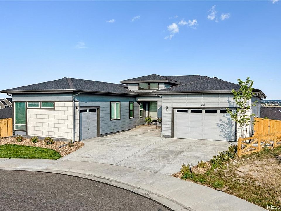 Situated on a premium semi-cul-de-sac lot with endless upgrades, this is 14340 Hop Clover Street in Trails at Crowfoot. This modern ranch offers the ultimate in luxury living including wide plank LVP flooring, custom hand-trowelled walls, curated designer finishes, amazing indoor/outdoor connectivity, a gourmet kitchen, and an amazingly finished walk out basement. Step outside to your entertainer’s oasis boasting an oversized deck that connects to a lower covered patio. Enjoy relaxing in the hot tub that overlooks a fully fenced, professionally landscaped backyard (one of the largest lots in the neighborhood!) and no neighbor to one side as it borders a community park. The well-appointed kitchen features an oversized center island, custom cabinetry, quartz counters, a stainless steel appliance package and a generous walk-in pantry. The sprawling main floor flows seamlessly to the private living quarters where you are welcomed by a spacious home office, two large secondary bedrooms, jack and jill bath and a luxurious primary suite. This haven features dual walk-in closets and a spa-like, 5-piece upgraded ensuite bathroom. Descend to the finished lower level, the perfect retreat, complete with a huge recreation room, a home theater room, two private secondary bedrooms and a well appointed 3/4 bathroom. Tons of storage in the unfinished area of the basement and a portion could be the perfect place for a home gym. This walk-out basement offers easy access to the backyard and hot tub, making this the ideal spot to entertain or enjoy year-round. Trails at Crowfoot offers extraordinary amenities including parks, trails, a pool, baseball field, pickleball courts, and disc golf! This turn-key home is true luxury living in the heart of Parker, do not hesitate to book your showing today!