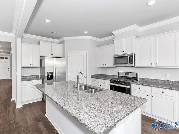 Move in ready! The Madison Plan. The Links at Canebrake - Right off Lindsay Ln, less than 5 minutes to I 65 and Hwy 72! Perfectly situated around an open main living area, the Madison creates the perfect blend of livability as well as privacy! Two secondary bedrooms comprise an entire wing and are serviced by a full bathroom. The third secondary bedroom has an en-suite full bathroom. Home includes a three car garage, Ventless gas fireplace, gas range, Granite Counters in kitchen, Quartz vanity tops in baths, Crown molding in living, kitchen, dining and foyer. Revwood in all living areas, tile in laundry and baths. Separate tub and shower in Owner's bath.