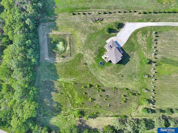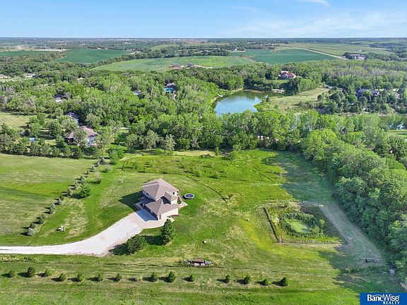 Tucked back on a private road minutes from Lincoln, this 5 bedroom/4 bath Schneider built home sits on just over 3 acres. The main floor features an open living/dining/kitchen area overlooking the large yard with a beautiful tree-lined view. The kitchen has ample cabinet space and attractive quartz countertops. Just off the kitchen is a drop zone room and half bath. The second floor has a convenient laundry room, 3 bedrooms (most with walk-in closets), and a spacious primary bedroom suite with an extra seating area and a beautiful bathroom. The basement has a 5th bedroom, an accessible bathroom, and a wet bar with fridge and dishwasher and second washer/dryer. The basement has a back stairwell (with a chairlift if wanted) leading to the garage for a separate living space if needed! In the utility room, there's an RO system, water softer and 2 water heaters. Outside you'll find a deck, patio, dog run, chicken coop and lots of land to explore! All in the Norris school district!