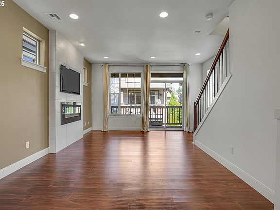 OPEN HOUSE: 07/12/2025, Sat, 12PM-3PM. Beautiful end-unit single-family home located in the highly desirable 45° Central community. This 1,447 sq. ft. residence offers 2 bedrooms, 2.5 bathrooms, a bonus room/office, and a 1-car attached garage.The home is filled with natural light, features an open floor plan, and boasts 9-foot ceilings on both the 2nd and 3rd floors, creating a bright and airy atmosphere. The great room on the 2nd level combines the living room, kitchen, and dining area—making the space both modern and cozy. The kitchen features stainless steel appliances and a large quartz countertop island, ideal for cooking and entertaining.The 3drd floor includes two primary suites and a laundry room for added convenience. The bonus room on the lower level is perfect for a home office, guest room, or flex space.Additional features include laminate flooring, wall-to-wall carpet, two patios, and central HVAC.The HOA fee covers access to community parks, clubhouse, gym, pool, common areas, and landscaping—providing a resort-like lifestyle.Prime location: steps from VillaSport and THPRD trails, one block from Nike, and just two blocks from Costco, WinCo, Best Buy, and Cedar Hills Shopping Center. Enjoy easy access to Highways 8, 10, and 26.This home is move-in ready and has been well-maintained :Exterior painted in September 2024. Carpet professionally cleaned in September 2024 .Roof professionally treated in June 2025.