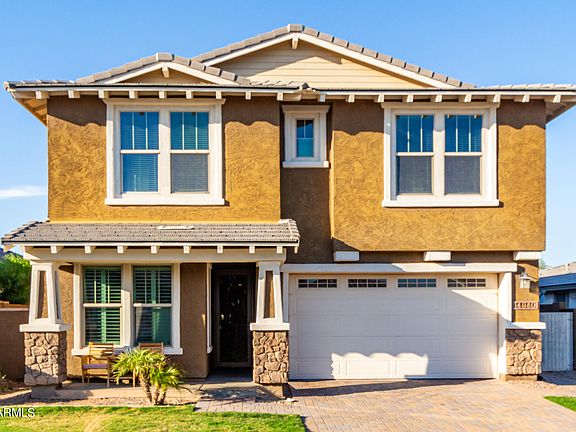 Assumable FHA Loan 3.875%! Become the proud owner of this exquisite two-story residence in the highly sought-after Marley Park! Enter through a solid steel decorative security door to your 5 bed, 4 bath, & 3-car garage, offering comfort & convenience. Original owner spared no expense with a list of upgrades including owned SOLAR system paid in full. Highlighted feature is the backyard made for Arizona Summers! Sit back in your custom Pool w/ large waterfall & fire feature on a baja step made for relaxing & staying cool. Tropical landscape, turf & travertine finish off the backyard and your oasis in the desert. Discover a spacious open layout boasting plantation shutters, tall ceilings, solar powered roll down shades for cathedral windows, and recessed lighting The heart of the house is the gourmet kitchen, equipped with a wall oven, a gas cooktop, granite counters, a tile backsplash, under cab lighting, and large island. Primary bedroom on first floor and a bathroom with lots of room, dual sinks, oversized custom spa tile shower with rain head, and walk in closet. Continue upstairs to find a generous loft, 3 bedrooms and 2 bathrooms.