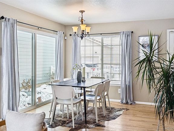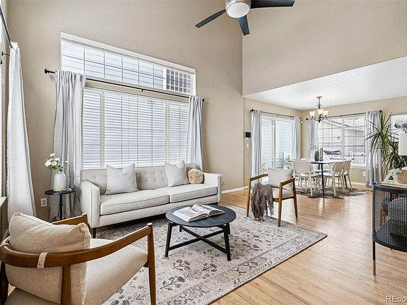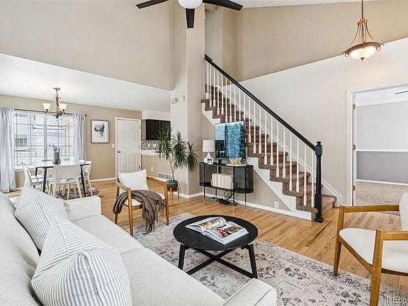 Welcome to this beautiful 4 bedroom, 2.5 bathroom home in the desirable Cottages community in the Broadlands of Broomfield! Gorgeous southwestern corner lot with a peaceful green space/courtyard out front. Functional layout and move-in ready! High ceilings, hardwood flooring, & open concept on the main level. Living room features numerous large windows that drench the space with light. The dining area opens to both the kitchen and living areas. The kitchen has dark cabinets for a modern aesthetic and stainless steel appliances. You'll also find one bedroom, a spacious full bathroom, and laundry on the main level. Two bedrooms, including the primary, on the upper level, along with an en suite bathroom and walk-in closet. The basement offers a fourth bedroom (or extra living space) and a powder room, plus a flex space (used by owners as an office space) that could be perfect for expanding the bathroom. Two car garage with high ceilings for extra storage opportunities. New water heater, high quality concrete roof Lovely patio, with brand new custom slider door, off the dining space. Low maintenance living (HOA takes care of all yard, landscaping, plants around the house other than what is in the fenced in side yard) and the HOAs offer many excellent amenities such as pools and clubhouses! Very difficult to get into The Broadlands at this price point, especially for a single family home.