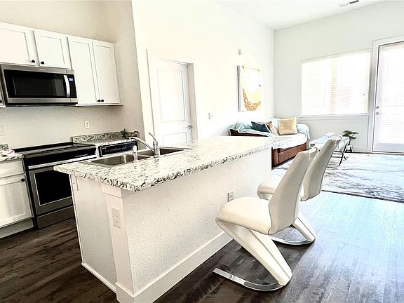 This 2019 Constructed condo features 2 spacious beds and 2 large full baths, 11 foot ceilings, a covered patio, and 1 dedicated parking space. The flooring is LVT, the kitchen is clean and new feeling. Located minutes from Settler's Park and within walking distance to an RTD station, shopping, restaurants and other conveniences in the neighborhood. Enjoy the 10 minute drive to Cherry Creek State Park, a 20 min drive to downtown Denver and easy access to Denver International Airport. All furnishing come with the property, making it a turnkey purchase.