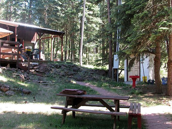 Very desirable small acreage (4.7 acres) in Bonanza. Roomy 1033 sq. ft. 1 bedroom 1 bathroom stick built home with laundry and potential extra room in the basement. Covered entry and covered 245 sq. ft. deck. Small corral and tack room already in place for your horses. Several out buildings including a 480 sq. ft. garage and attached 256 sq. ft. shop. Several other storage sheds on the premises for wood, equipment etc. Beautiful secluded quiet setting among the pines in Bonanza.