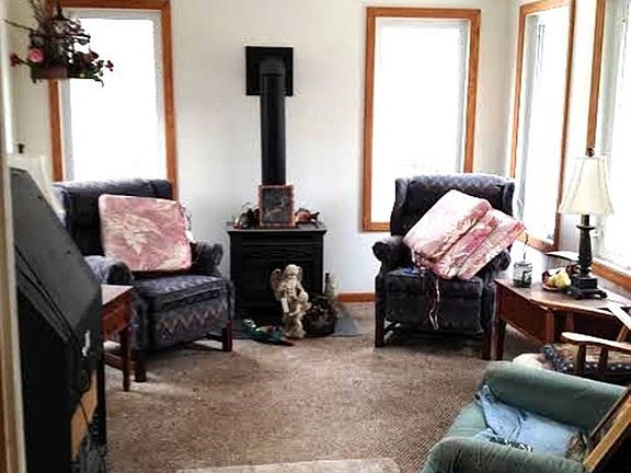 Great hill top setting on 5 acres! Full finished, walkout basement with family room, rec-room, den area and more! 4 season room with wrap around deck overlooking wooded backyard. Furnace, ac and roof all new within 5 years. Home Warranty included! 24x36 polebarn.