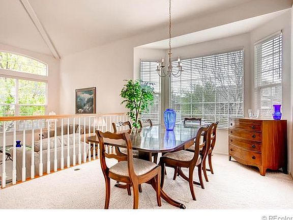 Pristine property in sought-after Broadlands. Dramatic arched entry welcomes you to the vaulted formal living and dining areas. Dining has bay window. Bright, spacious kitchen has an island, nook with slider, pantry, 42" cabinets, tile flooring and all appliances included. Huge family room features a gas log fireplace surrounded by architectural built-ins and sliding door to patio. Spacious master has a bay window plus his 'n hers closets. Five piece master bath includes decorative tile border. Main floor laundry has cabinets, washer and dryer included. Prime cul-de-sac location, corner lot. Backs to lush greenbelt. No neighbors to the west. Peek-a-boo mountain view. Lovely yard features mature landscaping. Basement ready for your finish. Rough-in plumbing. Deck and patio. Newer water heater. Roof and furnace certified. Security system prewire. 3 car garage insulated & finished