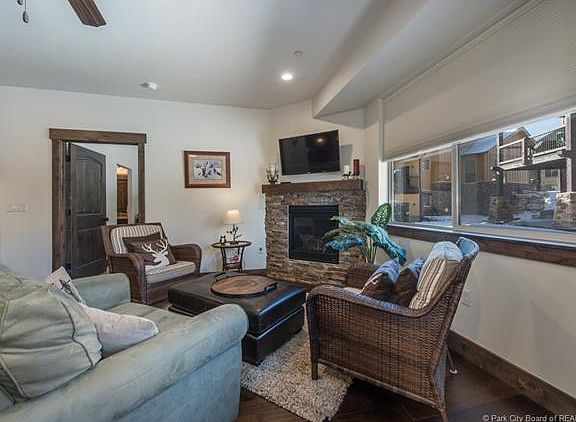 This lovely Black Rock Ridge condo is just minutes from Park City and world-class skiing. Comfortable mountain living on one level with a cozy stone fireplace and a dedicated laundry room. Beautifully maintained with granite counters, hardwood flooring, stainless appliances, alder cabinets, doors and trim and a breakfast bar. The great outdoor living space includes a large patio with a new hot tub and a gas BBQ connection. Located in a secure building with an elevator and a spacious one-car garage. Black Rock Ridge is a dog friendly community with wonderful biking and hiking trails adjoining the project. A GREAT place to all home.