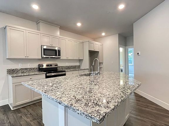 Ready Now! The Elmhurst is a perfect choice for those seeking a tranquil work from home office, with a den tucked away beyond the kitchen on the ground floor next to a half bath. Great corner unit with additional windows! The main level rounds out with an open-plan entertaining space that curls around to the stairs. Beautiful kitchen features a large island with bar style seating. On the second floor, both baths have a dual vanity. Bedroom two includes a walk-in closet and the primary suite is situated at the end of the hallway for added privacy. Community center with pool, gym, and other amenities! Near trails and parks. Close to Progress Ridge shopping including AMC Theaters, New Seasons, Big Al's, and many more shops and restaurants! Design highlights include: RevWood laminate flooring in main living areas, upgraded grey cabinets, and granite countertops in kitchen and full baths. Additional upgrades include: air conditioning and garage door opener. MLS#22485143