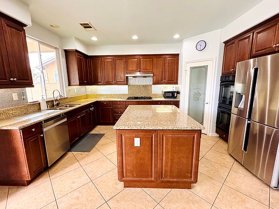OPEN HOUSE SUNDAY 4/27/25 10am-12pm Welcome home to this stunning 5-bedroom, 3-bathroom residence nestled in the heart of Eastvale! This beautifully maintained home is nearly 2,908 sq. ft. of comfortable living space, perfect for families and professionals alike. Bamboo Wood flooring, spacious open floor plan, plenty of natural lighting ; 3-car garage with SOLAR and Tesla charger ready to go.All bedrooms with ceiling fans for energy savings. The master suite has a raised ceiling and a luxury bathroom, shower stall and separate oval soaking tub, walk in closet, views to the back yard. A bonus room has equipped with projector which could be used as entertaining room. A beautiful private back yard featuring an alumawood covered patio, ceiling fan, large lawn and concrete patio with stamped concrete. Located in a highly desirable neighborhood, this home is close to top-rated schools, parks, shopping centers, and major freeways for easy commuting. Renters are responsible for paying all utilities (electricity, water, gas, trash, internet). Renters are prohibited to conduct any illegal businesses inside the house. Renters are responsible for maintaining the cleanliness of the property, including the front and backyard. 12 month lease offered. Firs month rent & Security deposit and key deposit of $250 is due at signing, No smoking allowed. Tenant is responsible for keeping the front yard maintained. Pet policy is negotiable.