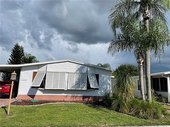 This charming residence boasts numerous delightful features. 2 BR, 2 baths + a dedicated office space ensuring privacy & a tranquil area to work or create a new craft/hobby with a private entrance to the expansive outdoor deck that was power washed, stained & sealed in 6/2024. Kitchen features new countertops, freshly painted cabinets w/new hardware, a new garbage disposal, light fixtures, a SS refrigerator & island cooktop. New blinds in the kitchen & living room. The exterior showcases freshly painted shutters & well-maintained sprinkler system. Golf cart inc! Community amenities: 2 pools, recreation center, fitness room, tennis courts, shuffleboard, bocce ball & pickleball. There's also a public golf course, pro shop & restaurant w/both indoor & outdoor seating, full liquor license w/views of the golf course and lake. Pet-friendly community w/restrictions. Lot rent $1340.00 lawn maintenance, common areas, recreational facilities, trash, Internet, TV, taxes, insurance. 55+ community.
