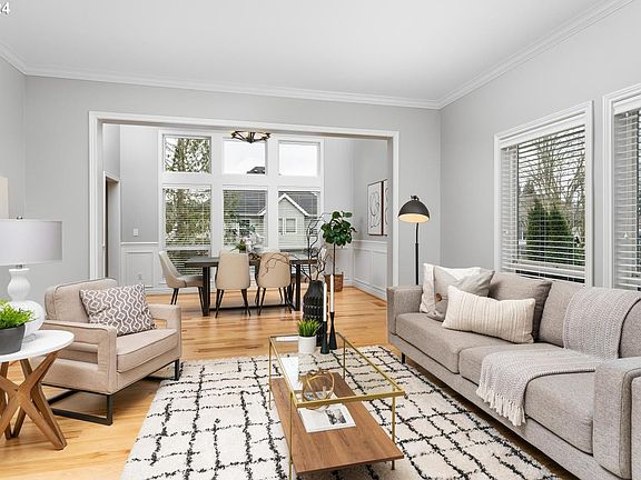 Light-filled and move-in ready in desirable Oakridge Estates in Bethany. Beautiful hardwood floors throughout main and lower levels. Updated interior paint, including woodwork. Well-laid out kitchen features island with four seat breakfast bar, spacious eating nook, pantry and stainless appliances, including 5 burner gas cooktop, Bosch dishwasher and four door LG refrigerator. Primary bedroom suite features slab granite vanity with double sinks, two-head tile shower, soaking tub and spacious walk-in closet. Soaring ceilings in den/office and dining room. Huge lower level bonus room with good light and slider to patio and level yard. Large deck off main level family room provides access to yard as well. Oakridge Estates community amenities include neighborhood park with play structure and picnic tables, tennis court and greenspace. Easy access to Bethany Town Center and area trails. Great schools, including Findley elementary, Tumwater middle and Sunset high.